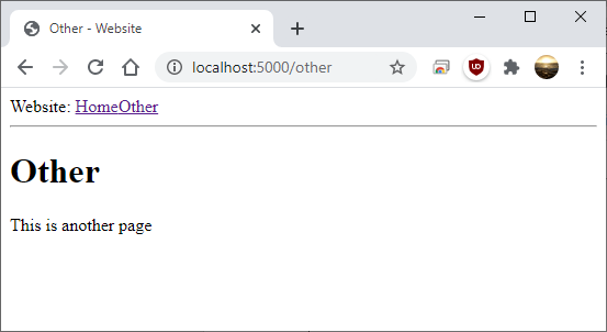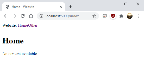 You’ll notice that we’re now passing an extra variable called content. When we run the program now, our pages should display the content that we passed from the routes file