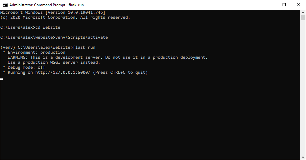 We covered a little bit of running flask in the first tutorial, we probably don’t want to have to do the full setup each time we exit command prompt.